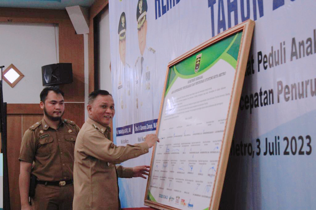 Dalam acara Rembuk Stunting ini juga dilaksanakan penandatanganan Berita Acara Rembuk Stunting Kota Metro oleh Wakil Wali Kota Metro, Ketua DRPD, Ketua TP PKK Kota Metro, dan OPD Kota Metro sebagai wujud adanya komitmen bersama antara eksekutif, legislative, dan mitra eksternal Pemerintah Kota Metro untuk berkolaborasi melakukan upaya percepatan penurunan stunting di Kota Metro.