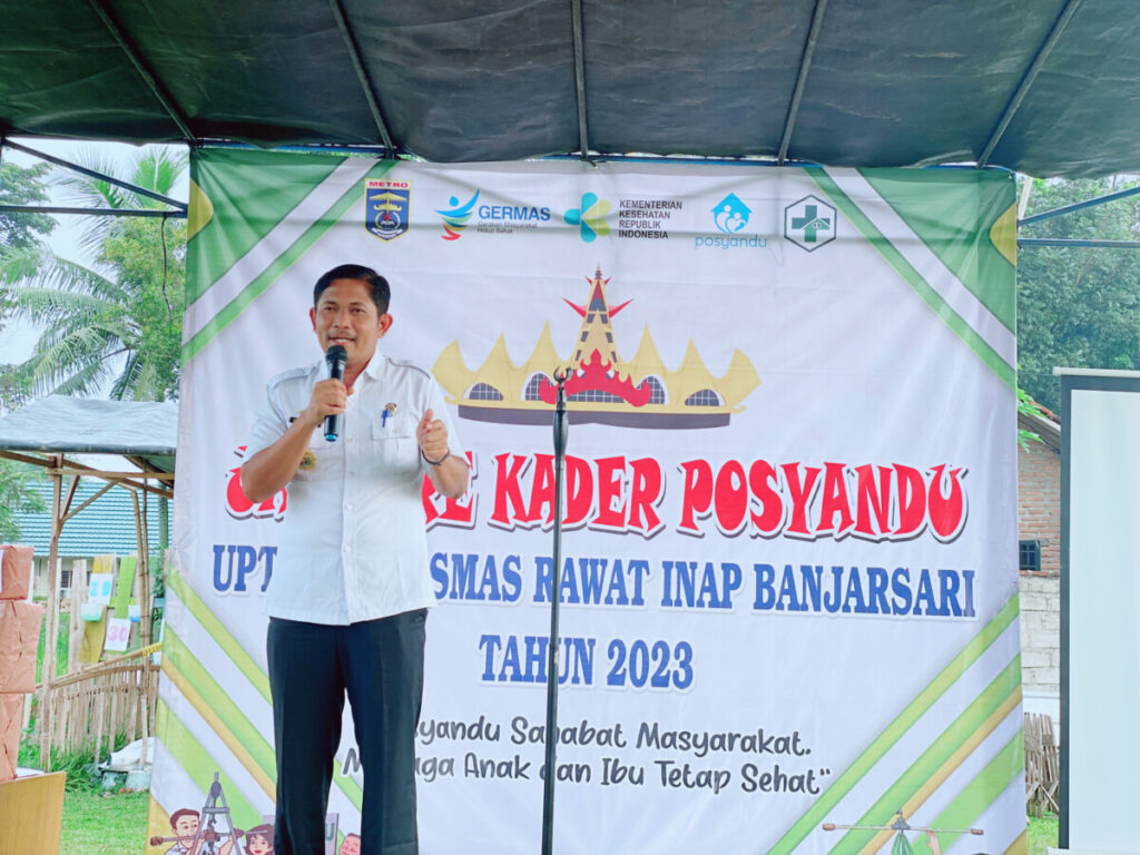 Hal tersebut diungkapkan Oleh Kepala Dinas Kesehatan Kota Metro, Dr. Eko Hendro Saputra.,ST.,MKes yang di dampingi oleh Kepala Bidang Kesehatan Masyarakat Kota Metro, Diah Meirawati.,SKM.,MKes dan Kepala Puskemas Banjarsari, dr. Balqis, dan Turut Hadir dalam kegiatan Jambore Kader Posyandu Puskesmas Banjar Sari Camat Metro Utara, Wilastri.,S.IP.MM